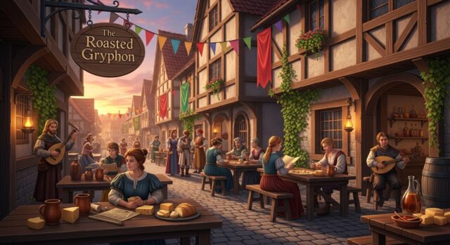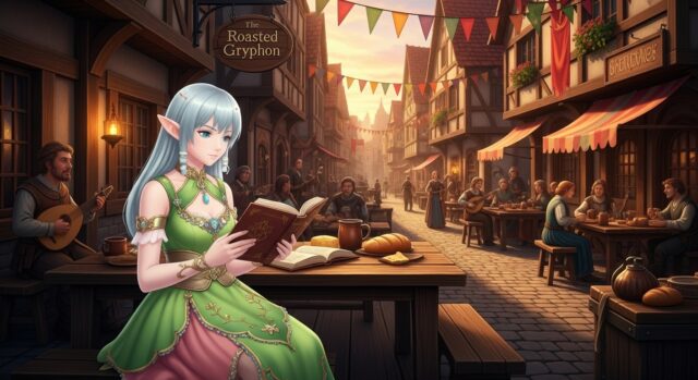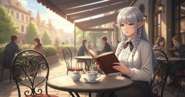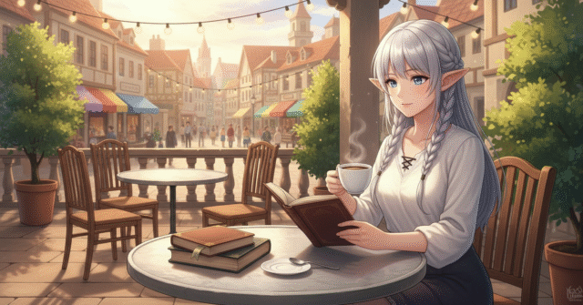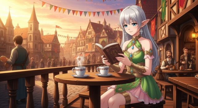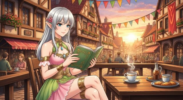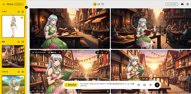 背景はプロンプトで「中世ヨーロッパ風カフェテラス」という感じで