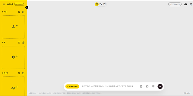画像アップロードかテキストによるプロンプト、またはサイコロアイコンでランダムも可能